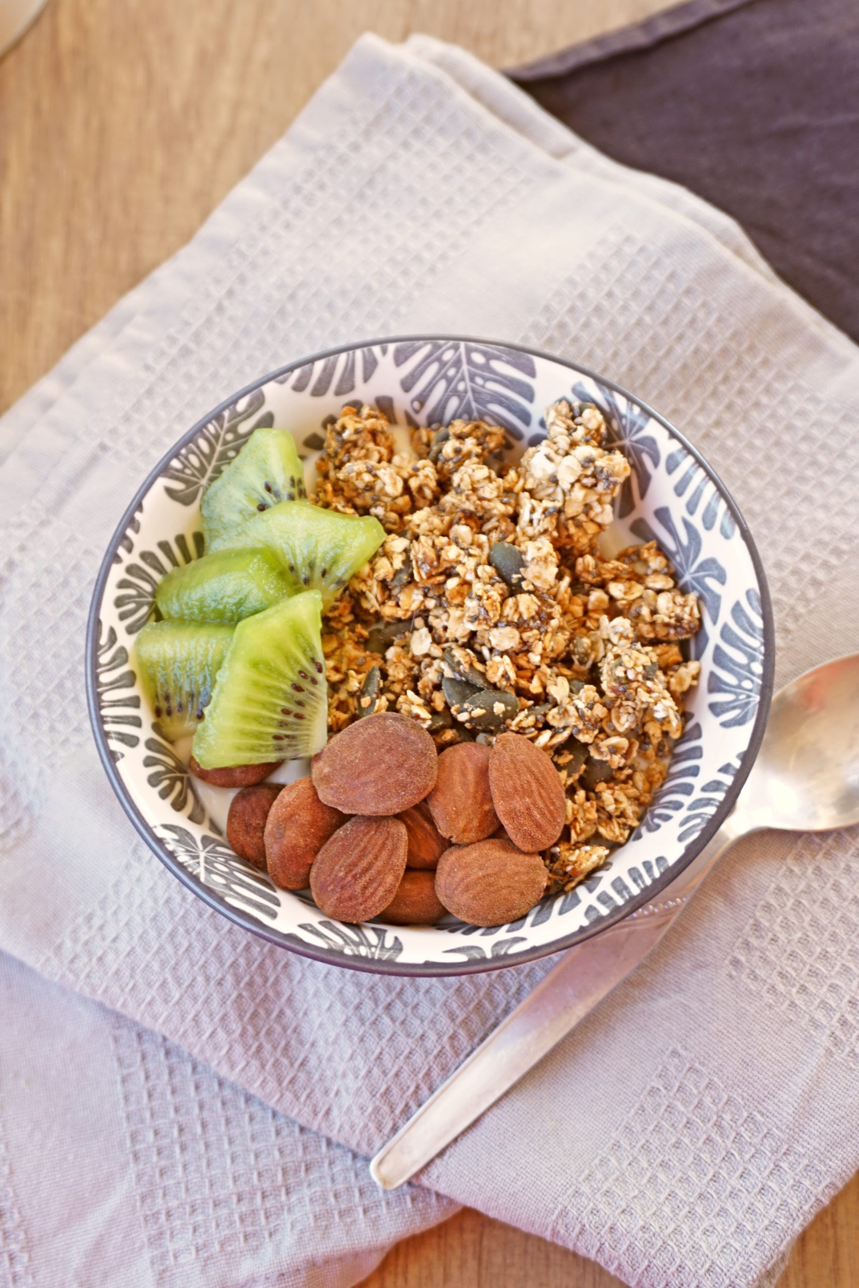 Yogur natural con granola casera, semillas de chía, frutas de temporada y sirope de agave. Energía limpia y sabor en cada cucharada.
